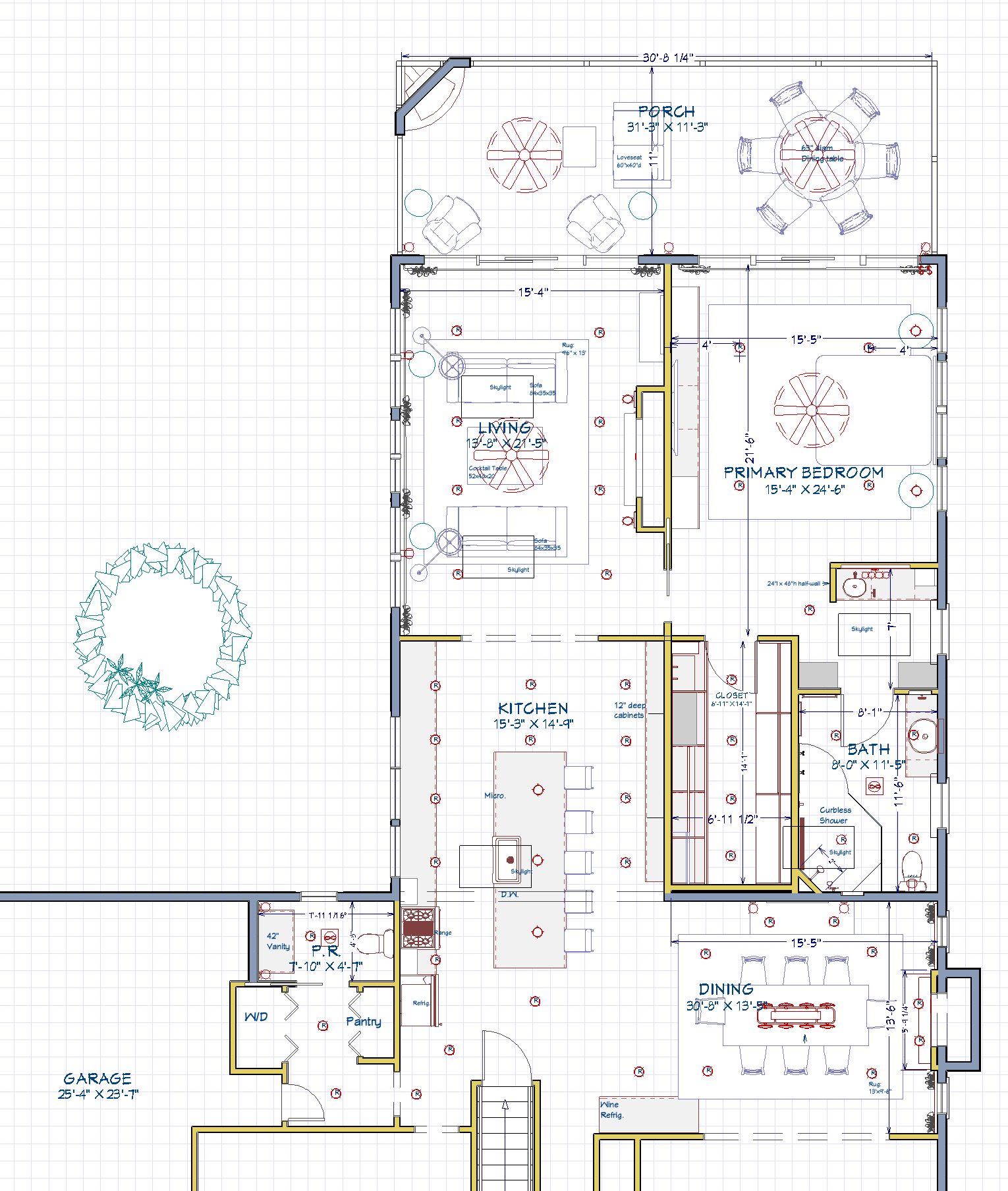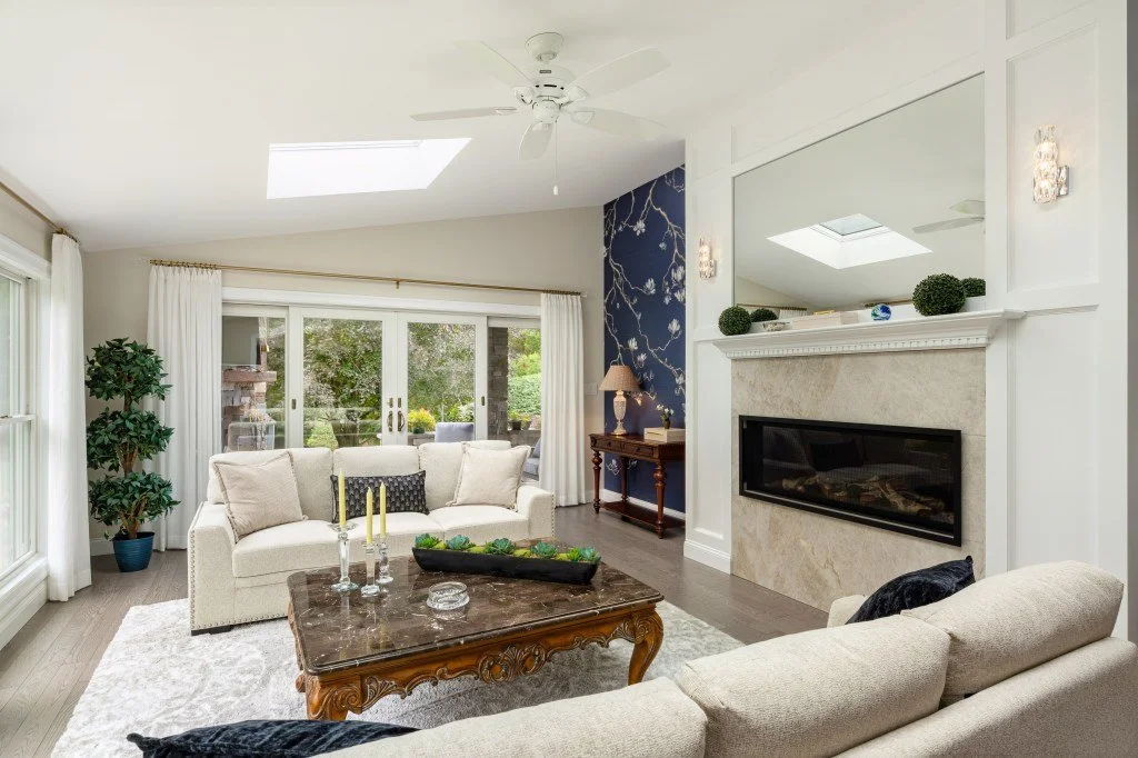 The builder had strongly suggested incorporating large skylights in as many of the rooms as possible. This became a significant feature which greatly affected the interior. Not only do they bring a ton of natural sunlight into the spaces and make them feel lofty, but the overall lighting is very balanced because of the multiple windows and skylights, as well as supplemental LED lighting when needed.