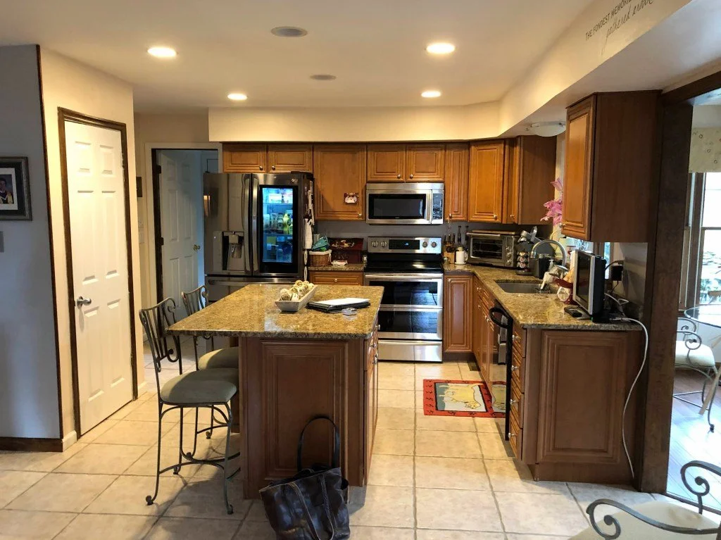 This West Chester, PA home, built in the mid-1980s, had already been through several transformations and upgrades by the time the homeowners decided to put an addition on the back of the house. Since this will be their “forever” home, they wanted to expand the kitchen and update the style, add a new sitting room (with a focus on their beautiful gardens, waterfall and Koi pond), a large covered porch, and a first-floor master suite.